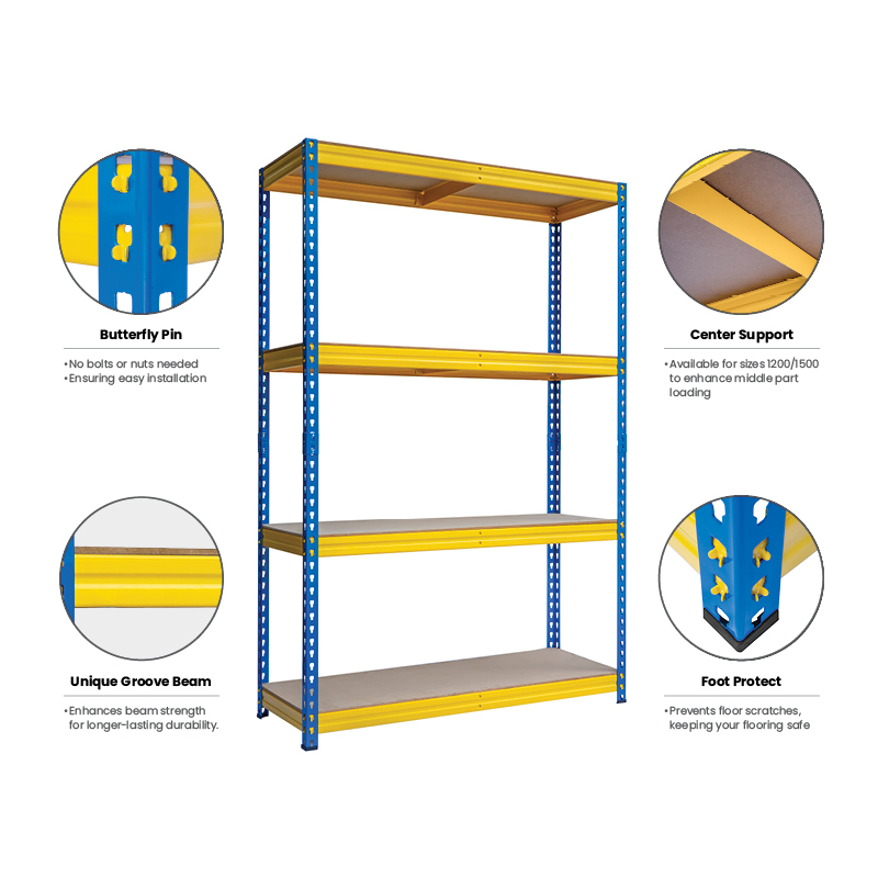 This metal shelving system is designed for durability and convenience. With each shelf capable of holding up to 200KG UDL per level, it's perfect for organizing your garage, warehouse, or office supplies. Featuring a butterfly pin design, assembly is a bQFreeze with no need for bolts or nuts, ensuring quick and easy installation. Plus, the unique groove beam enhances the strength of the structure, providing long-lasting durability that stands the test of time.